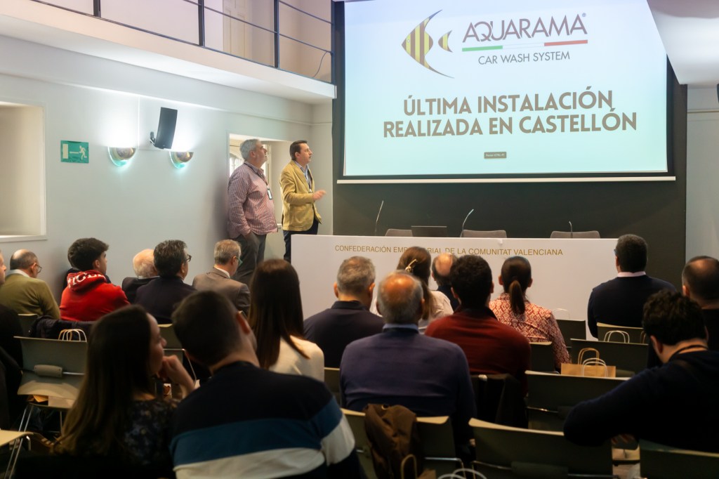 A continuación, David Rebollo, Export Area Manager en España de Aquarama, y Javier Vicent, representante de ventas la compañía para las provincias de Castellón y Valencia, presentaron las últimas novedades de la firma italiana de lavado de vehículos, una amplia gama de equipos vanguardistas con los que se pueden adaptar a las necesidades de cada estación. A su vez, mostraron algunos de los equipos que han instalado en la Comunitat Valenciana recientemente.