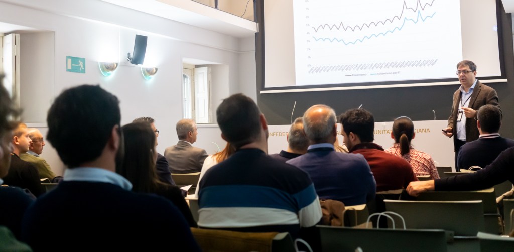 La última de las ponencias tuvo como protagonista a Pere Anrubia, abogado y asesor laboral de FEDMES, quien hizo un repaso sobre novedades recientes en materia laboral, previsiones futuras en la materia, así como un análisis exhaustivo de la situación actual en temas como el absentismo o la evolución del SMI respecto al IPC.